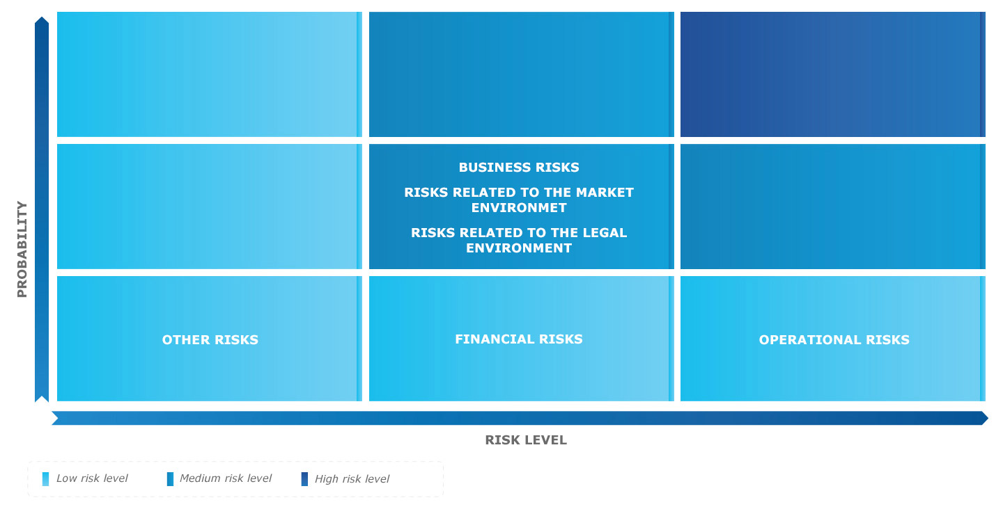 The Company believes that the following risks presented in the sections below are objectively most material; however, the order in which they are presented does not reflect their relative importance or impact for the Company. Additional risks, which are not yet identified or which are considered immaterial at this point, may also have an adverse impact on the activity of the Company, its financial position and results.