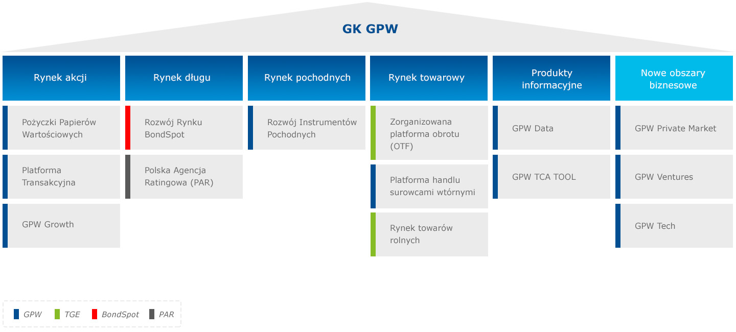 - GPW Tech – utworzenie spółki technologicznej świadczącej komercyjne usługi oraz sprzedaż produktów na rzecz środowiska rynku kapitałowego;